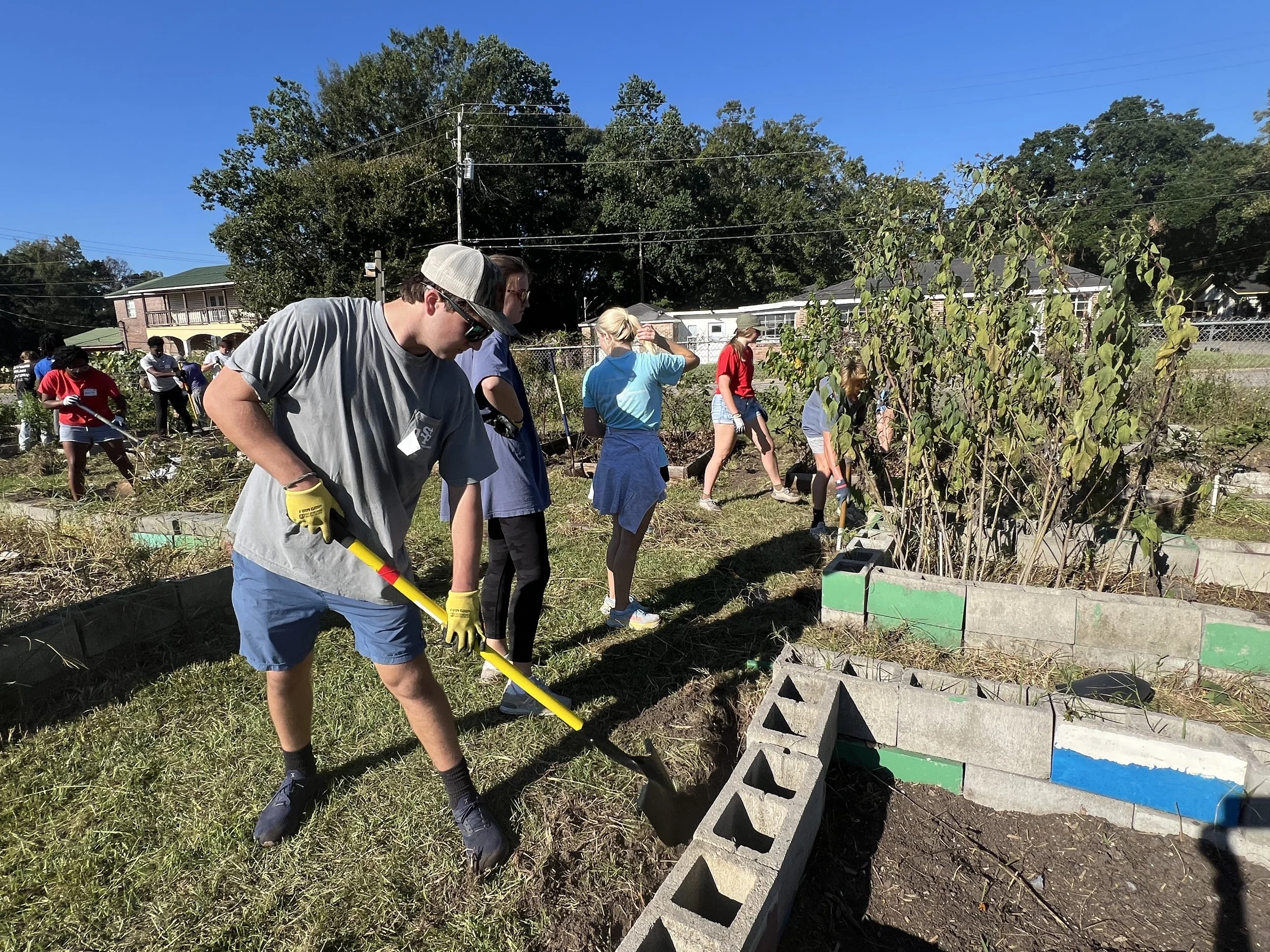 Geared up in garden gloves and tennis shoes, over 100 students and parents from St. Paul’s Episcopal School hit community gardens across the City of Mobile on the morning of October 16th, 2025. Volunteers prepared gardens for the fall across the following Mobile Urban Grower (MUG) network gardens: Taylor Park’s community garden, University of South Alabama Medical Museum’s medicinal garden, Craighead Elementary’s school garden, Trinity Episcopal Church’s community garden, Central Presbyterian Church’s community garden, Dauphin Way’s United Methodist Chruch’s community garden and pumpkin patch.